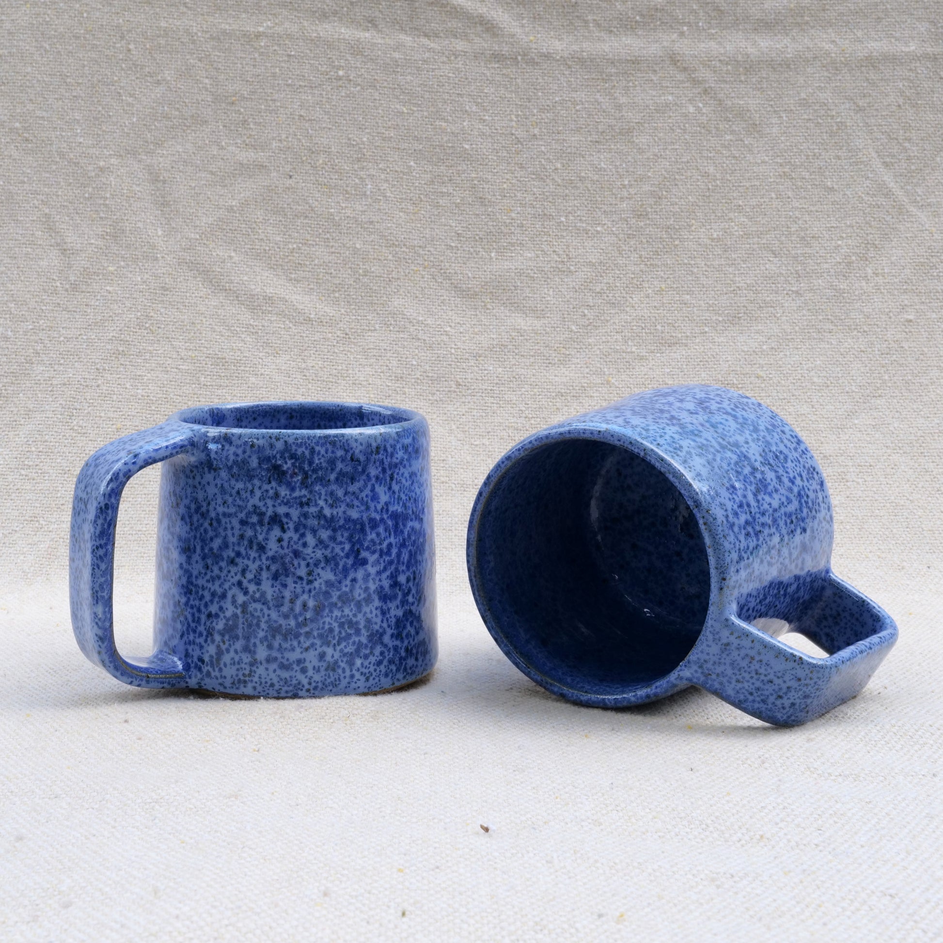 enjoy your everyday drink in this kaleidoscopic blue mug. the chemical reactions between the glazes produce many shades of blue, too many to count!