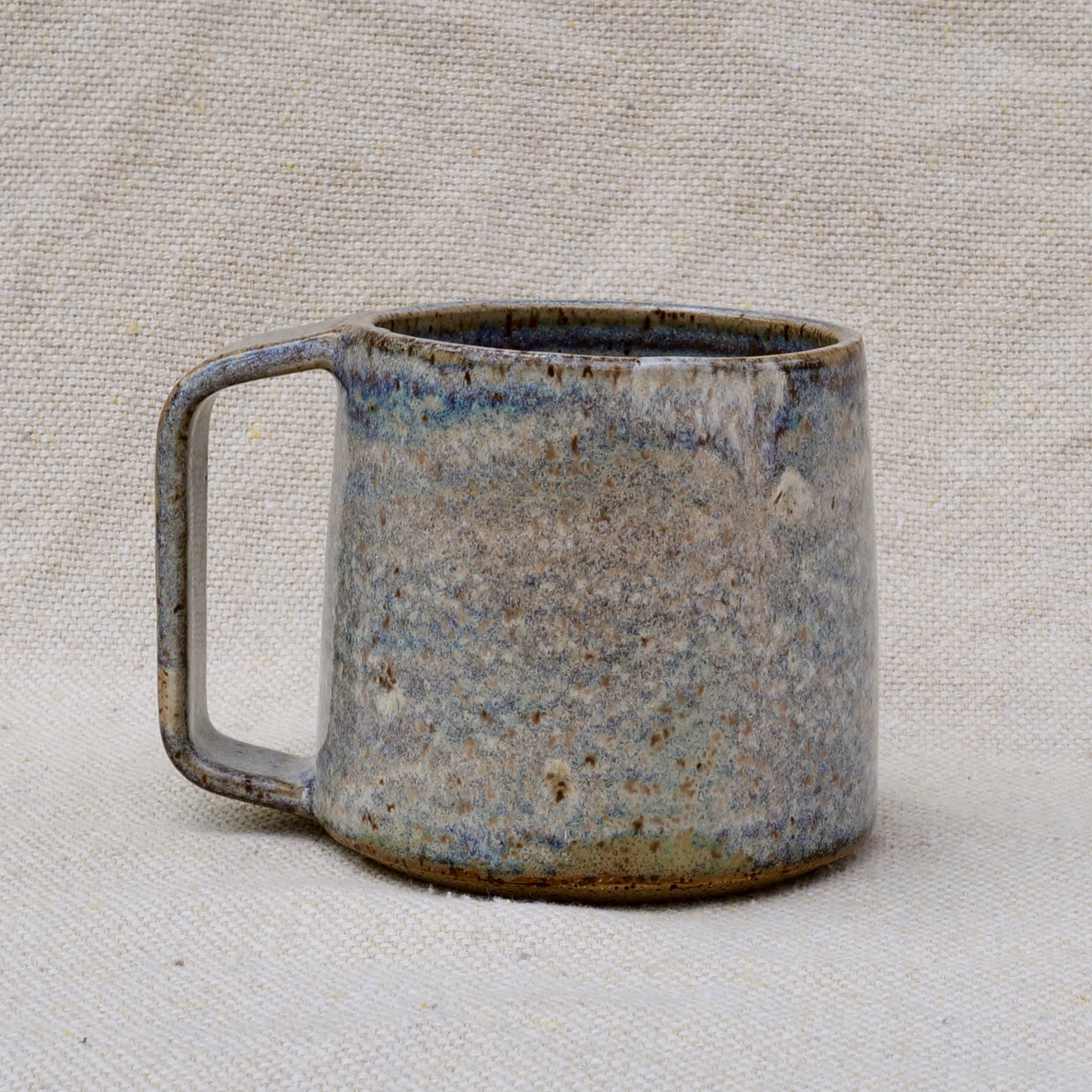 this mug rocks! the unpredictable nature of this glaze yields incredible effects that remind me of the granite mountains of new england - coarse textures, variations of color, and spots of pale green lichen.